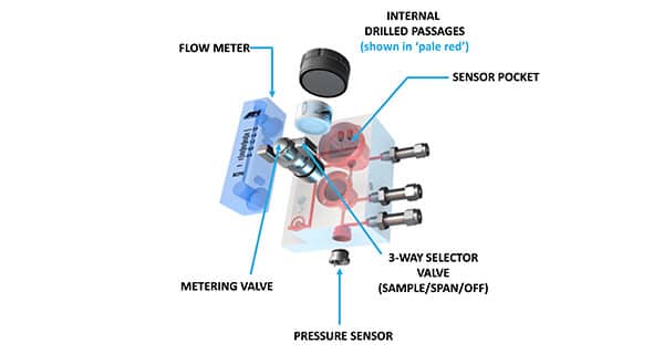 | 細胞消除器塊 | 包含完整的采樣系統及所有組件,包括流量計、計量閥、壓力傳感器和三通選擇(采樣/量程/關閉)閥,完全集成 | |