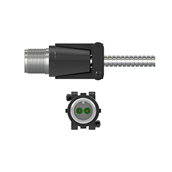 2 針 MIL 規(guī)格連接器,與鎧裝護套電纜一起使用,長時間安裝,250 °F (121 °C) 最高溫度