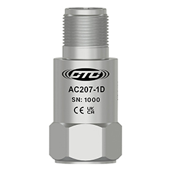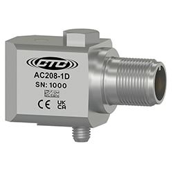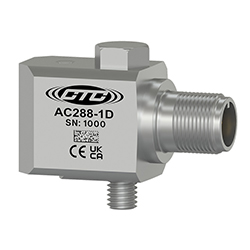 高溫IEPE加速度計,最高溫度325°F(162°C),M8X1.25固定螺栓,側出2針連接器,100 MV/G,±10%