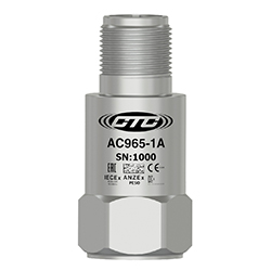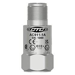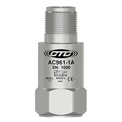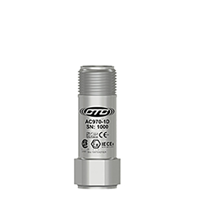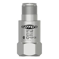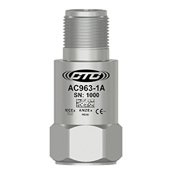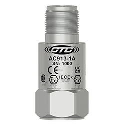 低電容,本質安全IEC認證(IECEX/ANZEX/PESO/KC/EAC)加速度計,頂部出口2針連接器,100 MV/G,±10%