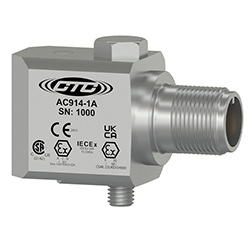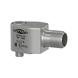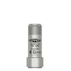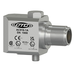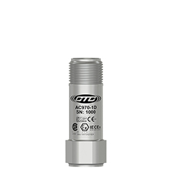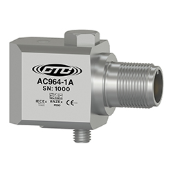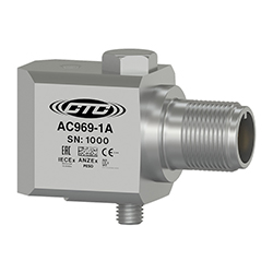 低電容本質安全雙輸出加速度計,加速度和溫度,頂部出口3針連接器,100 MV/G,10 MV/°C,±10%