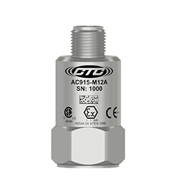 低電容本質安全加速計,頂部出口4針M12針連接器,100 MV/G,±10%