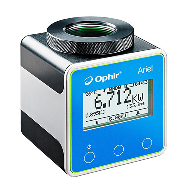在在“脈沖供電”模式下,Ariel通過測量短時間暴露于此功率的能量,從而測量不超過8kW的高功率工業激光器。將激光器設定為可輸送0.05至幾秒的脈沖。然后Ariel會測量激光脈沖的能量和持續時間,并計算功率。在連續模式下,Ariel可持續20秒測量不超過500W的功率,或持續測量不超過30W的功率。Ariel是狹小空間的理想之選,如增材制造室,以及生產過程質量控制和研發。