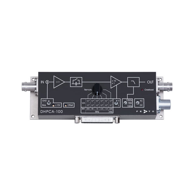 DHPCA-100 的許多特性包括:從 10 2到 10 8 V/A 的可調(diào)增益、可調(diào)偏置和偏移電壓、可切換的 10 MHz 和 1 MHz 低通濾波器、可切換的 AC/DC 耦合以及所有重要的選項(xiàng)可以直接在設(shè)備上或通過(guò)數(shù)字接口(例如使用 PC)控制功能。所有這些都安裝在堅(jiān)固、緊湊且符合 EMC 標(biāo)準(zhǔn)的外殼中,允許直接在信號(hào)源進(jìn)行放大,而無(wú)需長(zhǎng)電纜或干擾信號(hào)。