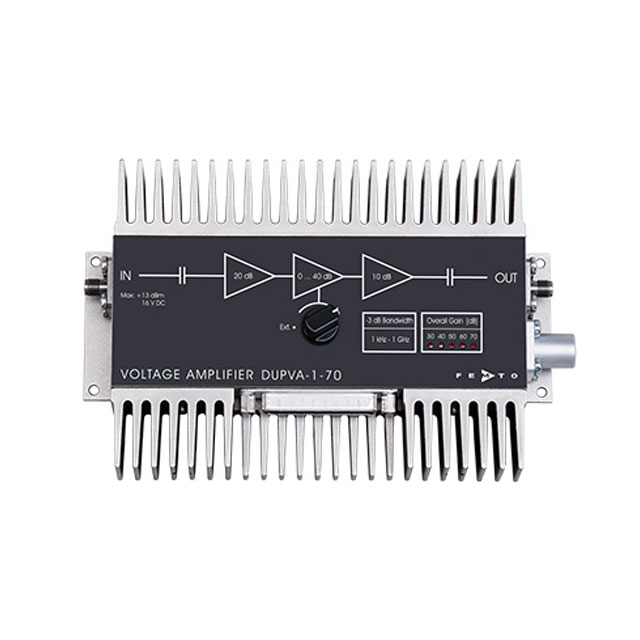 通過 LED 指示選定的增益設置。輸出短路保護。通過 3 針 Lemo ®插座供電。配套連接器隨設備提供。可選電源 PS-15 可用。如需更多信息,請查看數據表。