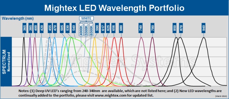 | 0395 | UV 395nm | 395 | 1000 | 3.1 | 6.2 | 12.4 |