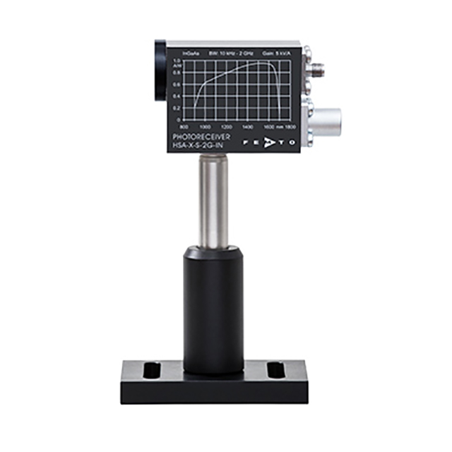 通過將光電二極管與久經考驗的FEMTO GHz 放大器技術相結合,我們設計了新型光接收器系列。HSPR-X 和 HSA-XS 提供 2 GHz 的帶寬上限。具有快速 Si-PIN 或 InGaAs-PIN 光電二極管的兩種型號分別覆蓋 320 至 1000 nm 和 900 至 1700 nm 的光譜范圍。由于采用精密的放大器設計,跨阻為 5 x 103 V/A時的最小 NEP 僅為 11 pW/√Hz 。這允許以 GHz 速度測量 μW 范圍內的光功率電平。