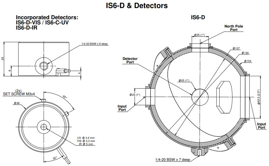 IS6-D-IR 是一個 6 英寸積分球(內部 5.3 英寸),帶有用于發(fā)散 (D) 光束的鍺檢測器。IS6-D-IR 配備紅外探測器,校準范圍為 700 至 1800nm,可測量高達 30W 的功率。