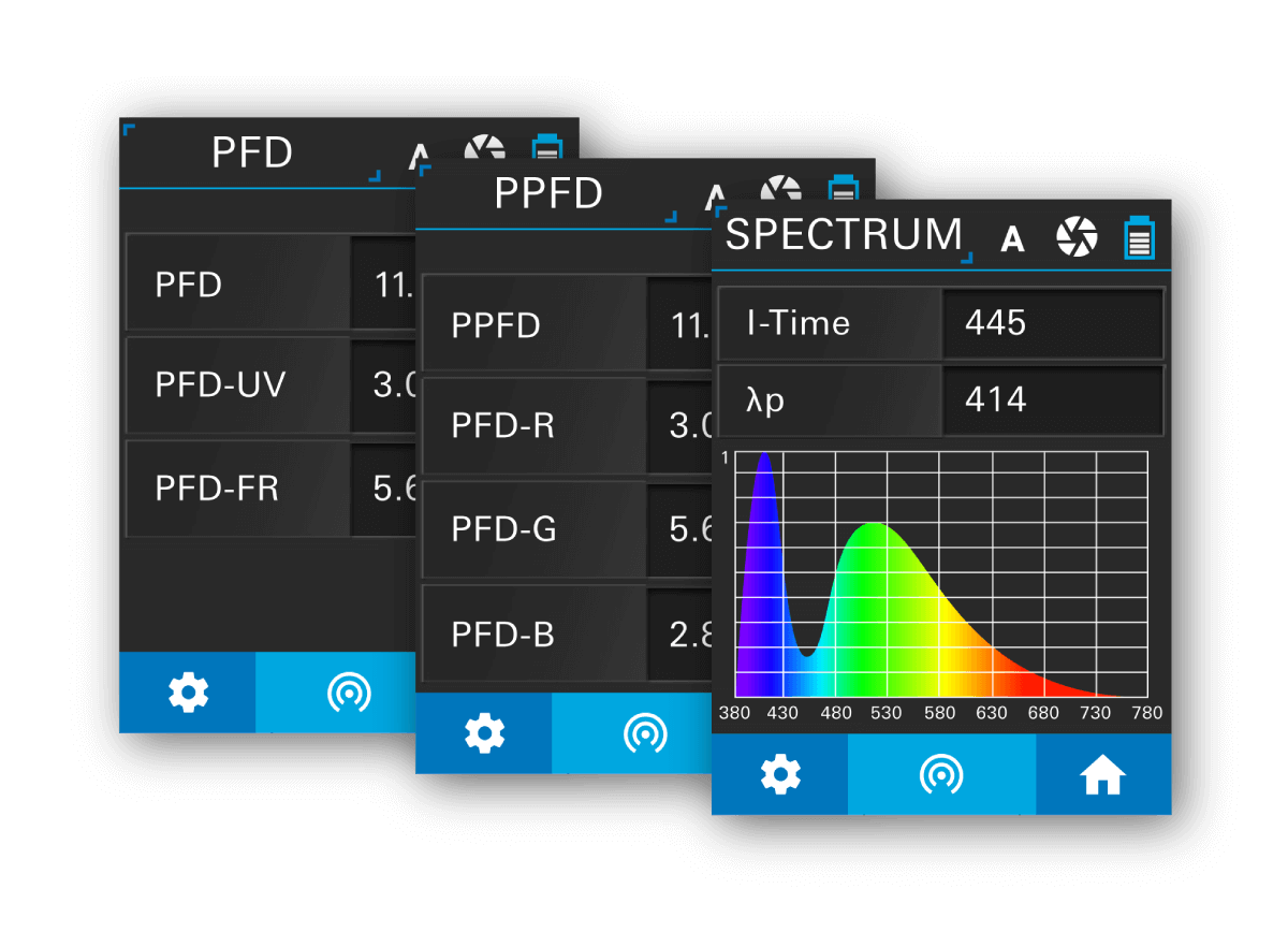 | 測量模式 | 測量模式:PPFD、PFD、頻譜(圖表)、記錄和網(wǎng)格 |