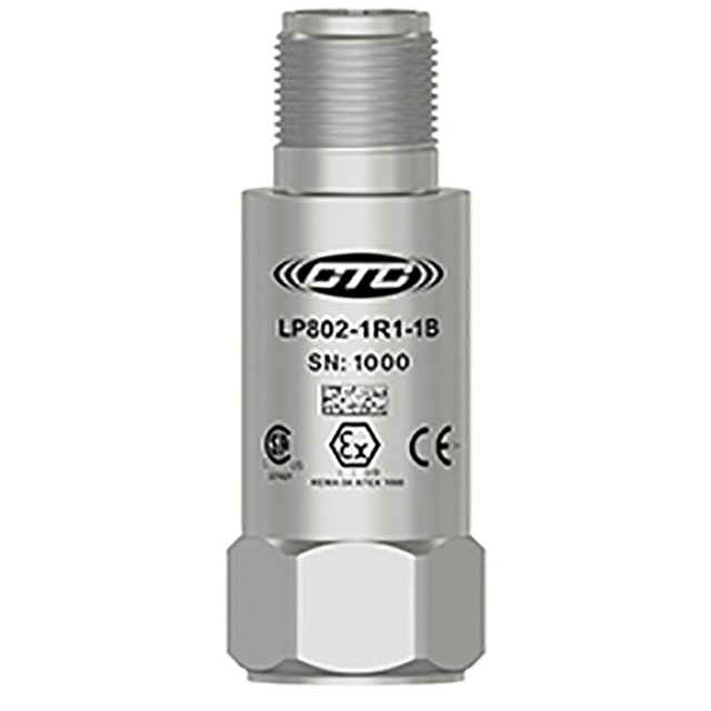 低電容,本質安全回路功率傳感器,4-20毫安輸出與加速度中的振動成比例,頂部出口帶飛線