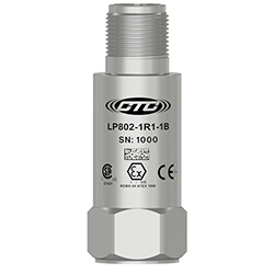 低電容,本質安全回路功率傳感器,4-20 MA輸出與加速度中的振動成比例,頂部出口2針連接器