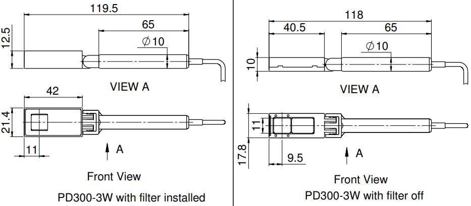 PD300-3W 是一種光電二極管激光測量傳感器,測量值為3W。它有一個10x10mm的孔,帶有旋轉安裝和可拆卸過濾器。在沒有濾波器的情況下,其光譜范圍為350-1100nm,功率測量范圍為5nW-100mW。使用濾波器,光譜范圍為430nm-1100nm,功率范圍為200μW至3W。傳感器配有1.5米電纜,用于連接儀表或PC接口。