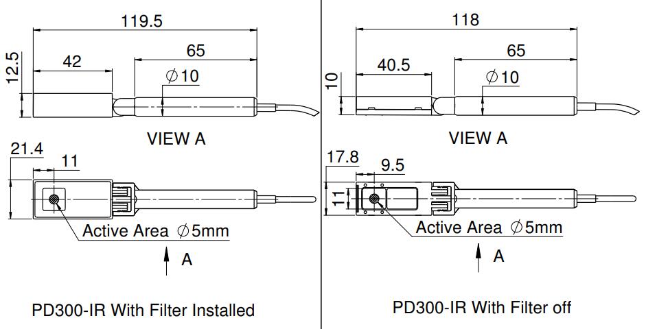 PD300-IR 是一種用于近紅外的光電二極管激光測量傳感器。它有一個 5 毫米的孔徑,帶旋轉支架和一個可拆卸的濾鏡。不帶濾光片時,其光譜范圍為700-1800nm,功率測量范圍為5nW-30mW。使用過濾器時,光譜范圍為 700 - 1800nm,功率范圍為 200μW - 300mW。該傳感器帶有一根 1.5 米長的電纜,用于連接到儀表或 PC 接口。