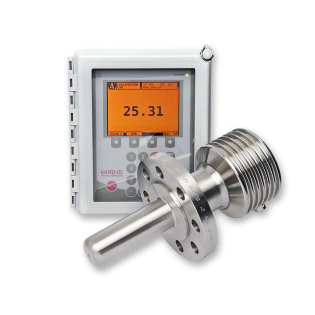測量范圍涵蓋 0-100 %(按重量計)。精度通常為 ±0.1 % bw,測量自動進行溫度補償??梢耘渲玫蜐舛群透邼舛染瘓蟆S捎诓捎脭底謧鞲屑夹g,即使大量的懸浮物、氣泡或顏色變化也不會影響測量或準確性。