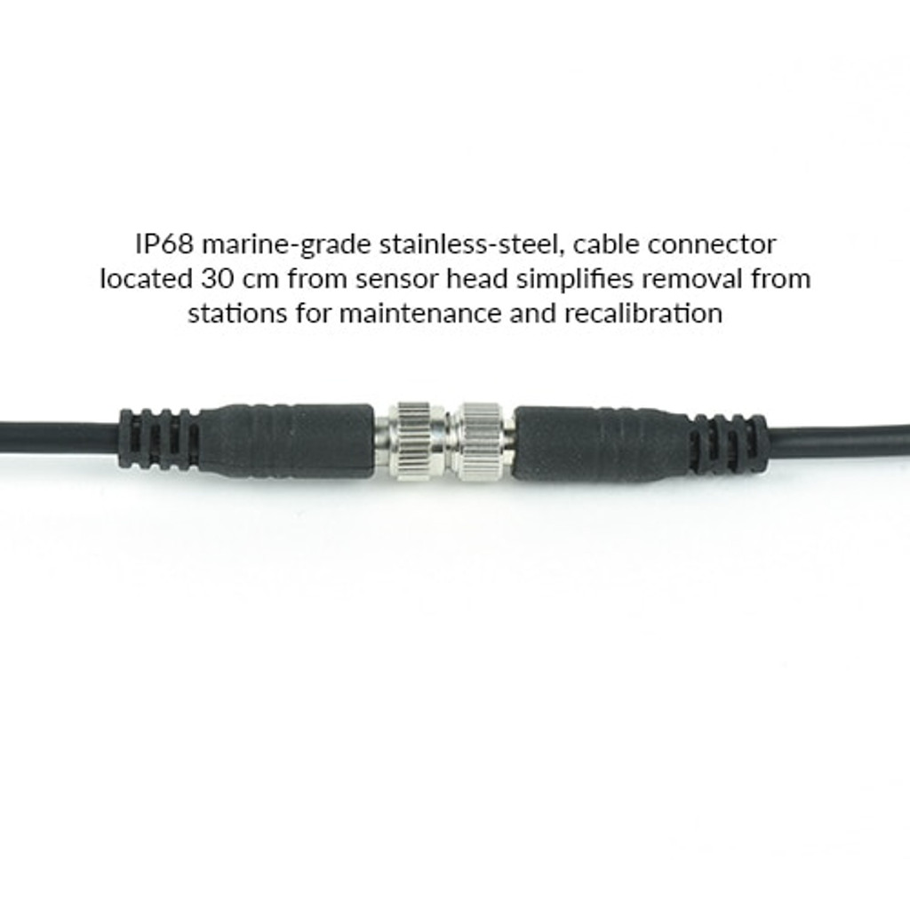該傳感器的模擬版本 (S2-111) 帶有內聯電纜連接器,距離傳感器頭 30 厘米,可作為長電纜尾纖傳感器標準使用,或通過擰下連接器與我們的 microCache 藍牙微型記錄器一起 使用,丟棄較長的電纜,然后將傳感器擰到 microCache 上的配合連接器上。