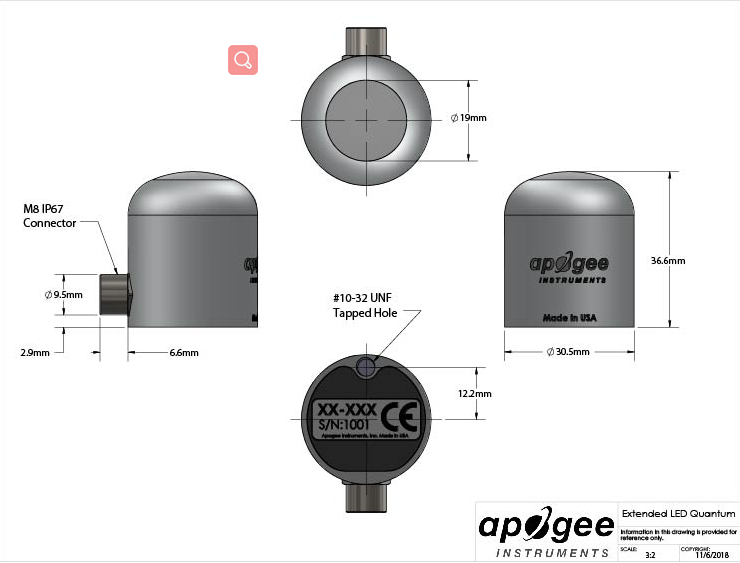 | 靈敏度 | 25 mV / μmol mˉ2 sˉ1 |