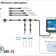 最多 62 個 WET150 可以連接到單個 GP2 SDI-12 數(shù)據(jù)記錄器(取決于電纜長度和電源要求)。