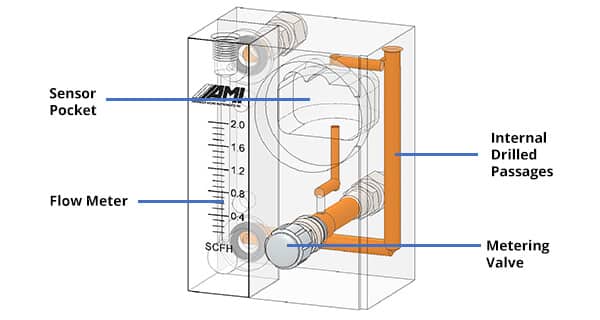 | ELIMINATOR CELL BLOCK | Contains a Complete Sample System with all components, including the flow meter and metering valve, fully integrated |