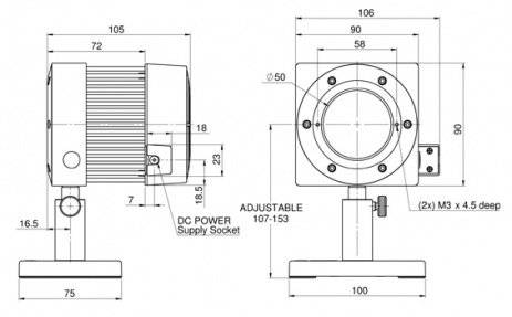 | Dimensions | 90 L x 90 W x 105 D (mm) |