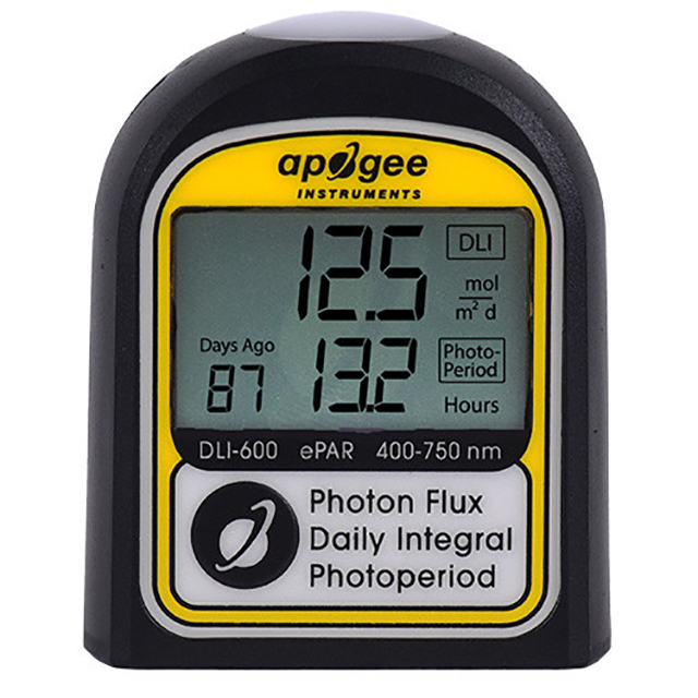 Measurement mode: This sturdy, waterproof and compact instrument is very suitable for single (spot check area) or continuous measurement of PPFD or ePPFD; DLI; And photoperiod. The DLI-600 instrument has two different screen modes to display measured values: storing data and viewing data in real time. In the Stored Data screen, it displays the DLI measurement, the optical period, and the date the data was collected (up to 99 days ago). The Live View Data screen displays the average ePPFD run in the last 2.5 seconds. Measuring and controlling DLI and the light time (photoperiod) received by plants is essential for optimizing plant health, triggering flowering and inducing other plant morphological effects. EPPFD, DLI and photoperiod data can be viewed on the screen or downloaded via USB-C data lines for analysis.
