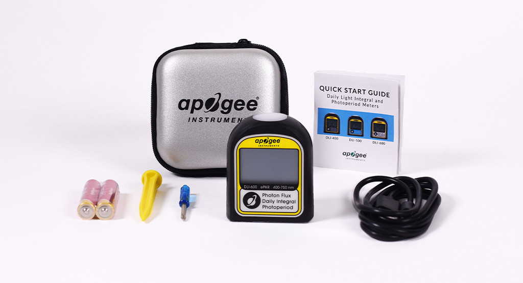 Rugged and ready to use: The DLI-600 is sturdy and durable, with the protection level of IP65, and can withstand harsh and humid environments. It can be carried around for spot check, placed directly on any horizontal surface, or connected to the commonly used camera tripod, fixture, or the standard used at the bottom ?- 20 threaded ports. The DLI instrument consists of a cast acrylic diffuser (filter), an optical filter, a photodiode, a signal processing circuit, and an LCD display mounted in the ASA plastic housing. Each DLI package includes the instrument, a protective suitcase, two AAA batteries, a quick start guide, a screwdriver, a soil nail for easy installation, and a USB-C cable for downloading the data stored in the instrument to the computer as a CSV file.