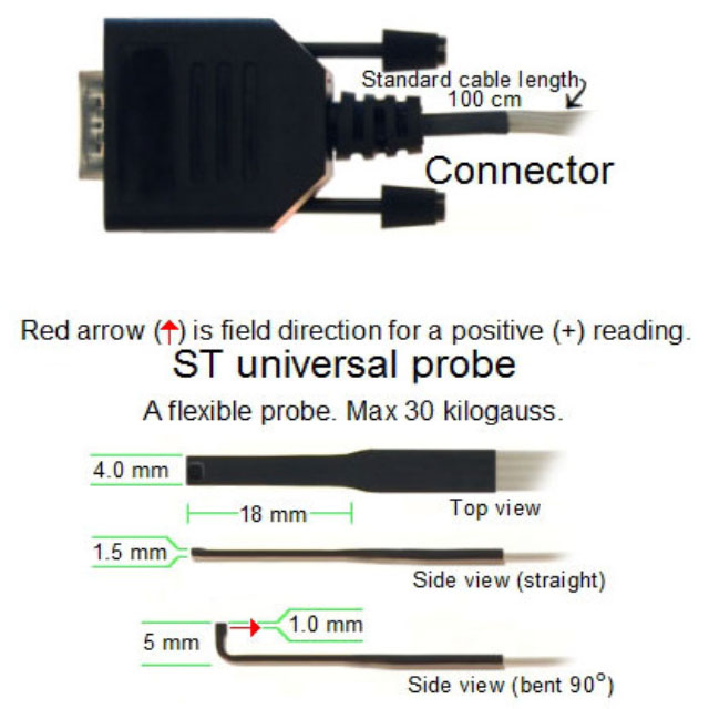 The ST Universal Probe is a flexible probe for use with the Gaussmeter Model GM2.