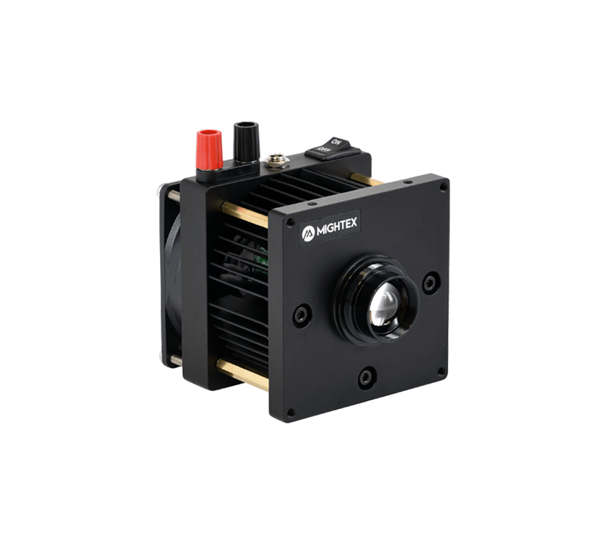 New Type-H super high-power collimator LED sources with 30-50W emitters have been added to the product portfolio. These new collimator light sources produce a market-leading optical power output of up to 3.3W, which is up to 5 times from our existing high-power Type-B collimator LED sources. The LED emitters are mounted directly onto the metal base of the collimator which also features an integrated heat sink and a cooling fan. This configuration minimizes thermal resistance between the LED emitter and the heat sink resulting in better heat dissipation. The collimating lens can be adjusted if needed for precise collimation. A locking ring fixes the lens position after adjustment. The collimators have been pre-adjusted in the factory.