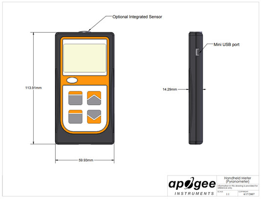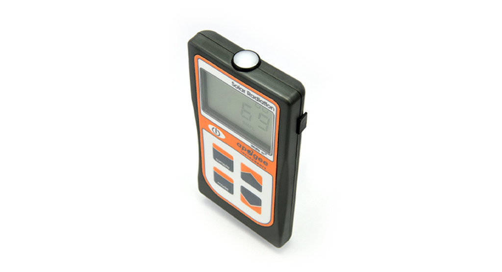 The MP-100 has a sensor integrated into the top of the hand-held meter that displays and stores measurements in W m-2;. Typical applications include shortwave radiation measurement in agricultural, ecological, and hydrological weather networks and solar panel arrays.