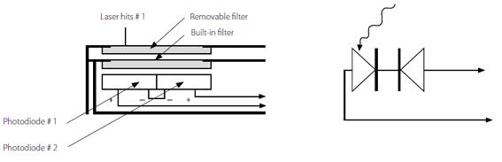 When a photon source (such as a laser) is aligned with a photodiode detector, a current is generated that is proportional to the light intensity and depends on the wavelength. Since the power of many low-power lasers is about 5 to 30mW, while most photodiode detectors are saturated at about 2mW, PD300 sensors are built with built-in filters, so the basic sensors can measure power up to 30mW without saturation. The PD300 sensor series can measure power up to 300mW or 3W, depending on the model, with the help of an additional removable filter.