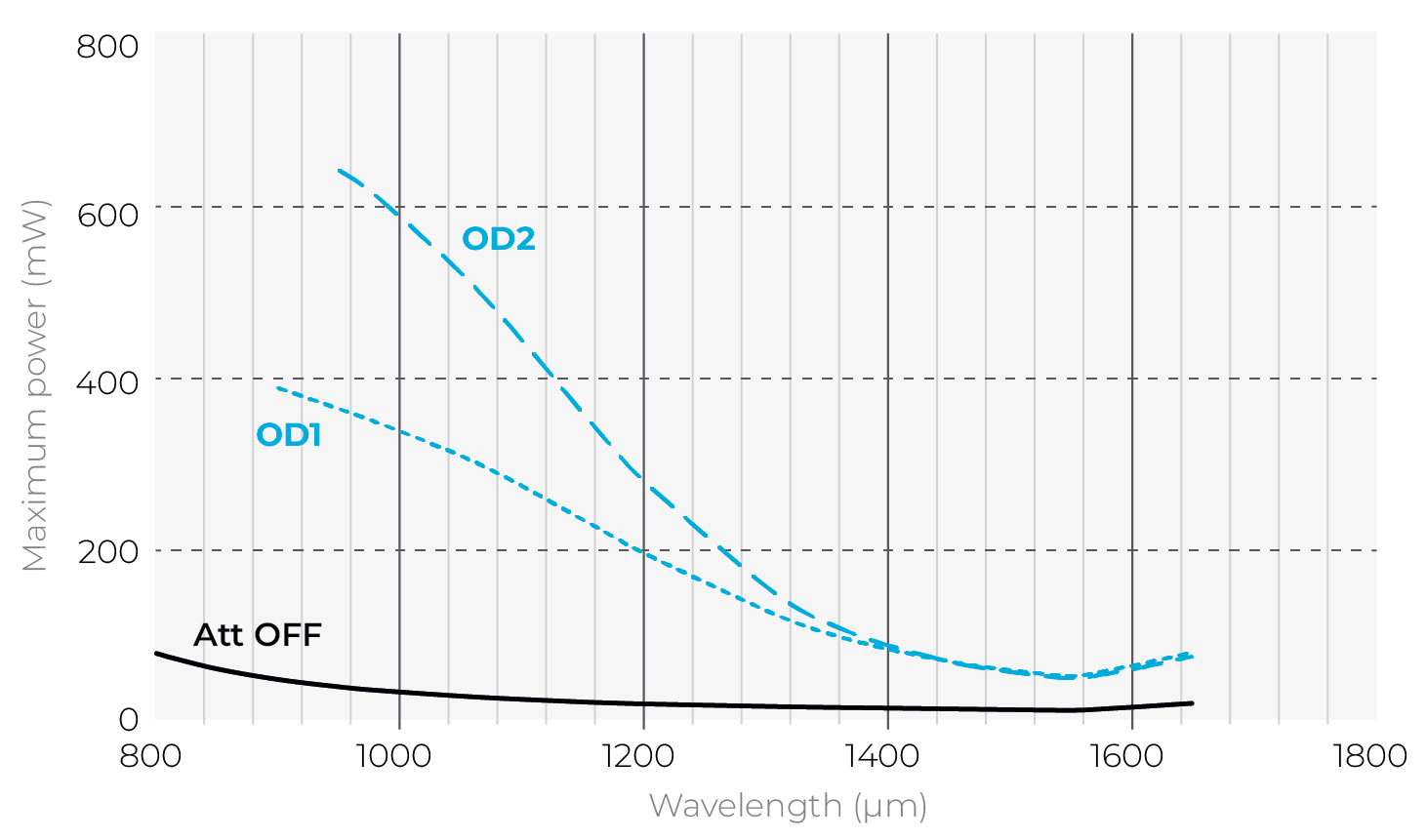| Maximum average power density | 100 W/cm2 |