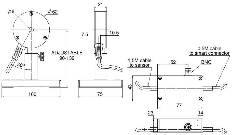 RM9 radiometer is a sensor used to measure the power of low-level CW or quasi CW laser and light source. RM9 uses a pyroelectric sensor and a lock-in amplifier with an 18Hz chopper (excluding RMC1 or other choppers) to measure a wide range of radiation from 100nW to 100mW. It has an 8mm aperture and covers the spectral range from 0.15 μm to 12 μm.