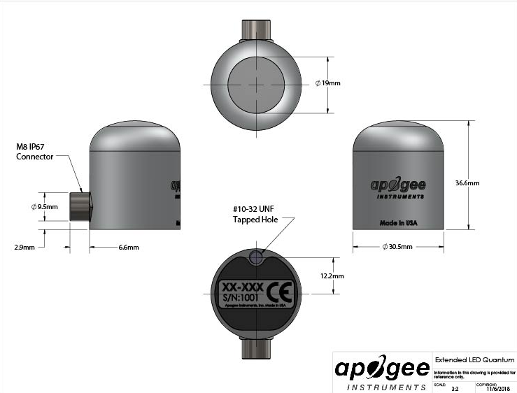 The analog version of this sensor (SQ-640) comes with the inline cable connector placed 30 cm from the sensor head for either standard use as a long-cable pigtail sensor, or for use with our microCache Bluetooth Micro Logger by unscrewing the connector, discarding the long section of cable and then screwing the sensor to the mating connector on the microCache.