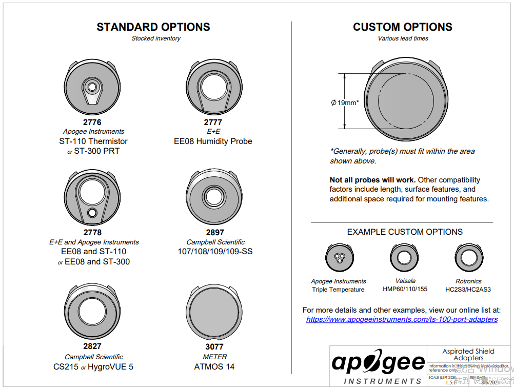 The TS-200 is the shield-only model of Apogee's 24 volt fan-aspirated radiation shield. The unique aerodynamic shape and rugged, low-power fan make it the first research-grade fan-aspirated shield that is practical for use on battery or solar powered stations. The shield provides excellent sensor protection and accommodates various combinations of thermistors, PRTs, and humidity probes using one of the sensor port adapter plugs. Click here for a list of compatible sensors. If you use a different sensor, please contact us directly to discuss compatibility. Typical applications include air temperature and humidity measurement in weather networks, often for weather forecasting, and solar energy sites. Fan-aspirated shields are also important in the precise measurement of air temperature and humidity gradients above the land surface and in climate change monitoring.