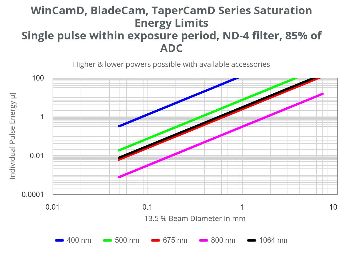 With a large 25 x 25 mm active area, 4.2 Mpixels, 12.5 x 12.5 μm (effective) pixels, optical and electronic triggering of a global shutter, and an SNR of 2500:1, the TaperCamD-LCM off ers the largest active sensor area on a USB-port powered laser beam profiling device. By combining the high signal-to-noise ratio and global shutter of the WinCamD-LCM with a high-quality fi ber optic taper, the TaperCamD-LCM off ers a very compact, easy-to-use solution for measuring a variety of large CW or pulsed lasers.