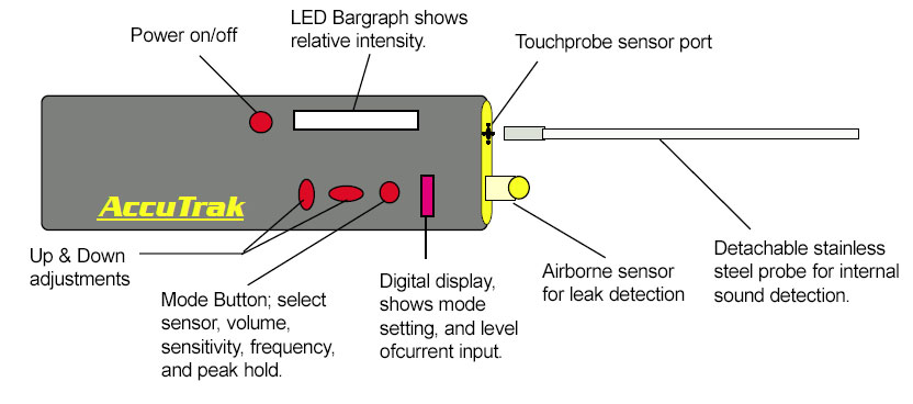 When powerful performance is needed and budgets are limited, choose the versatile Superior AccuTrak® VPE-1000 Ultrasonic Leak Detector. It is the first low cost digital ultrasonic leak detector, offering extraordinary features at a fraction of the cost of other ultrasonic instruments. The versatile AccuTrak® VPE-1000 features separate ultra-sensitive sensors for both airborne and contact ultrasound. Extremely sensitive to the ultrasonic sound of leaks and friction in industrial systems, the VPE-1000 Ultrasonic Leak Detector uses a technique called "heterodyning" to translate ultrasound to a lower frequency which our ears can interpret. AccuTrak® Ultrasonic Leak Detectors are so sensitive they can hear the blink of an eye, yet most background noise will not interfere with leak detection accuracy. Patented technology uses a microcomputer and digital circuitry making the AccuTrak® VPE-1000 the most accurate and repeatable ultrasonic leak detector available in its class.